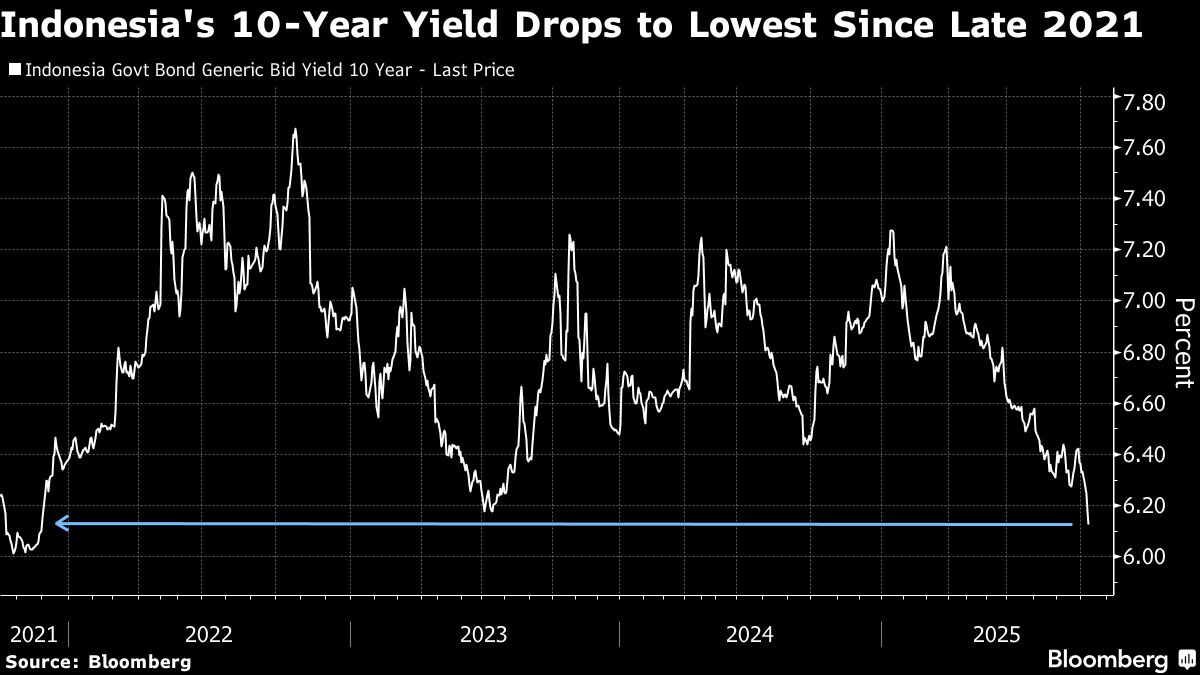 Pada Selasa (14/10/2025), yield obligasi pemerintah tenor 10 tahun ditutup di 6,056%. Ini menjadi yang terendah sejak September 2021 atau empat tahun terakhir.